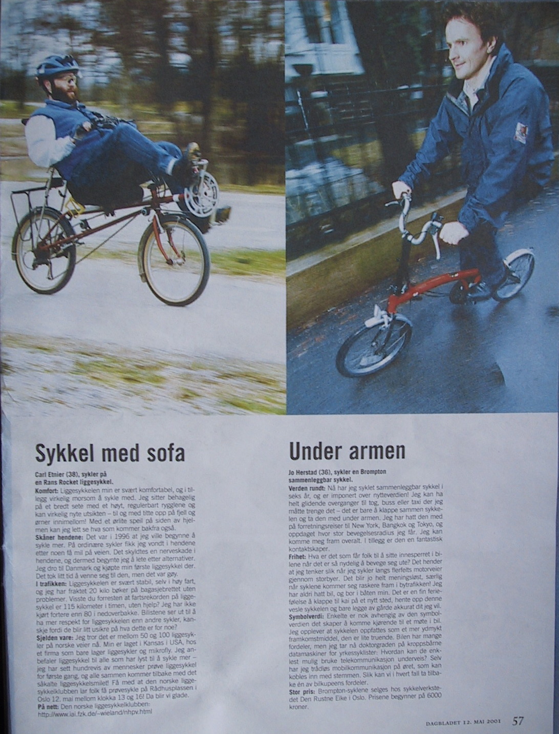 Her kommer siden fra artikkelen i Dagbladet Magasin som hadde liggesykkelen..