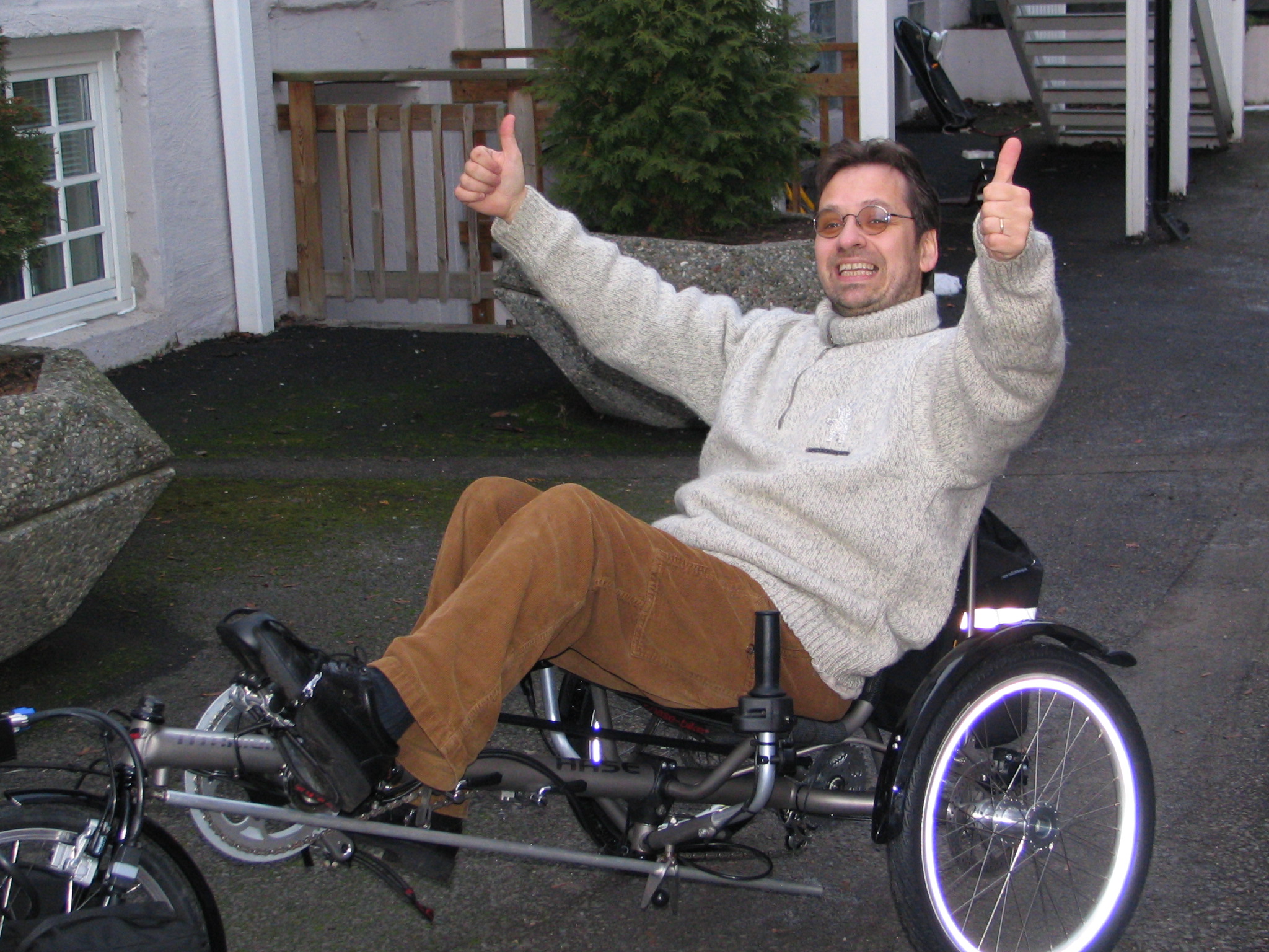 Morten Haugseng Gravarslia 6, 4327 Sandnes haug_at_sandnes.online.no | Jeg har drevet med MTB siden slutten av 80 tallet, min interresse for liggesykkler ble fanget da jeg leste om Mike Burrows, Windcheetah tidlig på nitti tallet, på den tiden hadde jeg verken råd eller mulighet til å få tak en, da den på det tidspunkt ikke ble serie produsert. Etter å ha prøvd en Greenspeed GLR ble interessen revitalisert og har endelig bestillt meg en Trice Micro. |